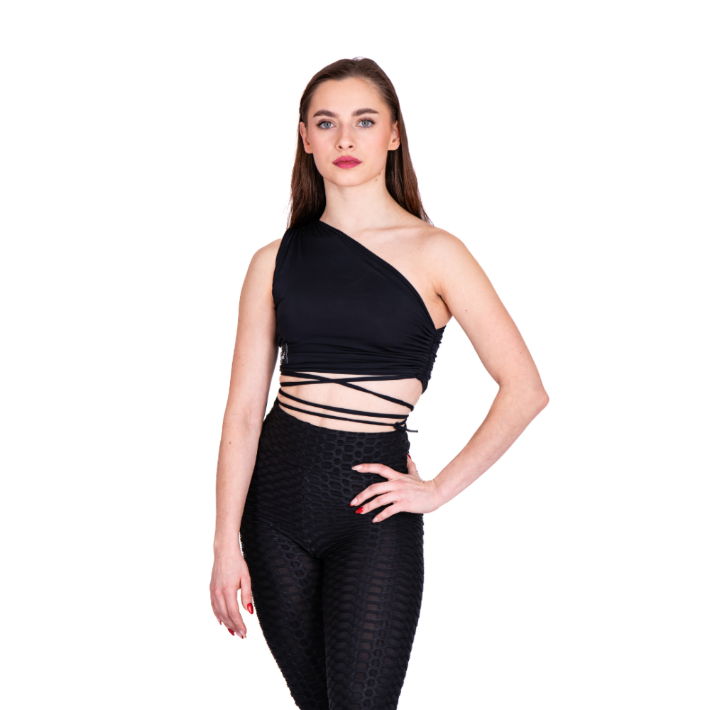Dámský zdrhovaný Crop Top z matné lycry na zavázání kolem pasu, vhodný na trénink.