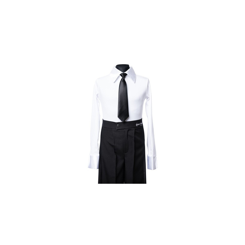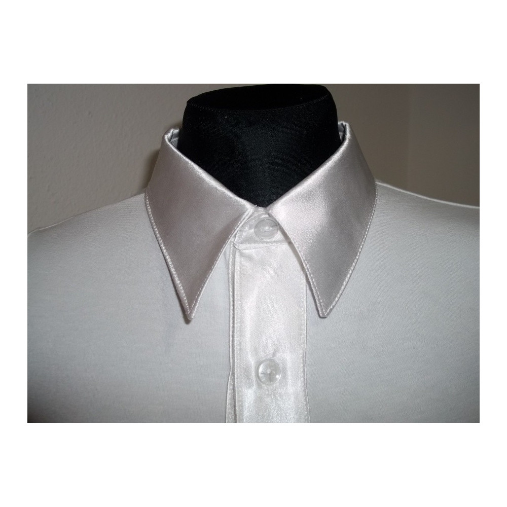 Košile bílá body se saténovými manžetami a saténovým límečkem.