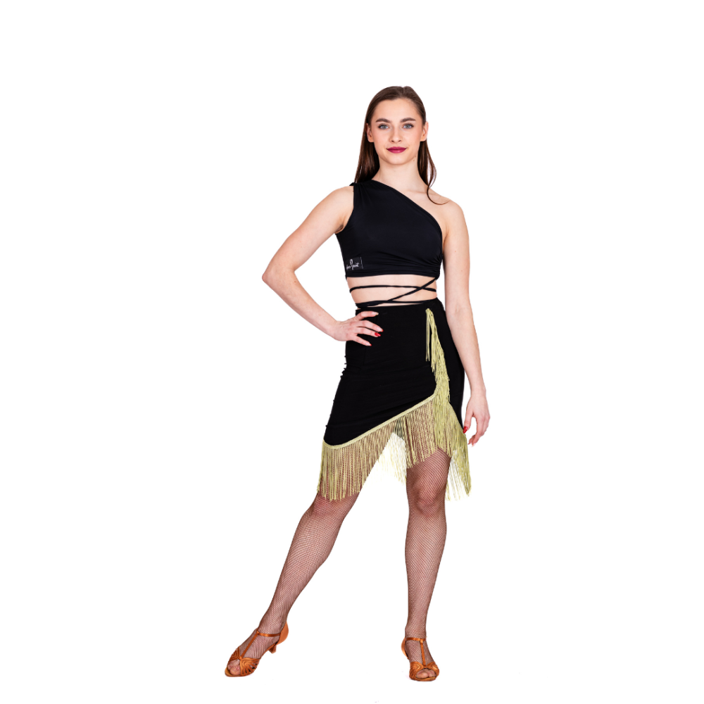 Tréninková krátká sukně s třásněmi na LAT. Sukně je naší vlastní výroby dance-pOint.Materiály:elastický úpletVelikosti:XXSXSSMLXLdalší velikosti po dohodě.(třásně lze zvolit libovolné dle naší nabídky třásní