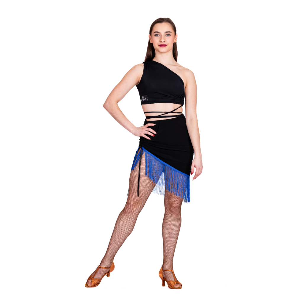 Tréninková krátká sukně s třásněmi a zdrhováním na straně na LAT dámská. Sukně je naší vlastní výroby dance-pOint.