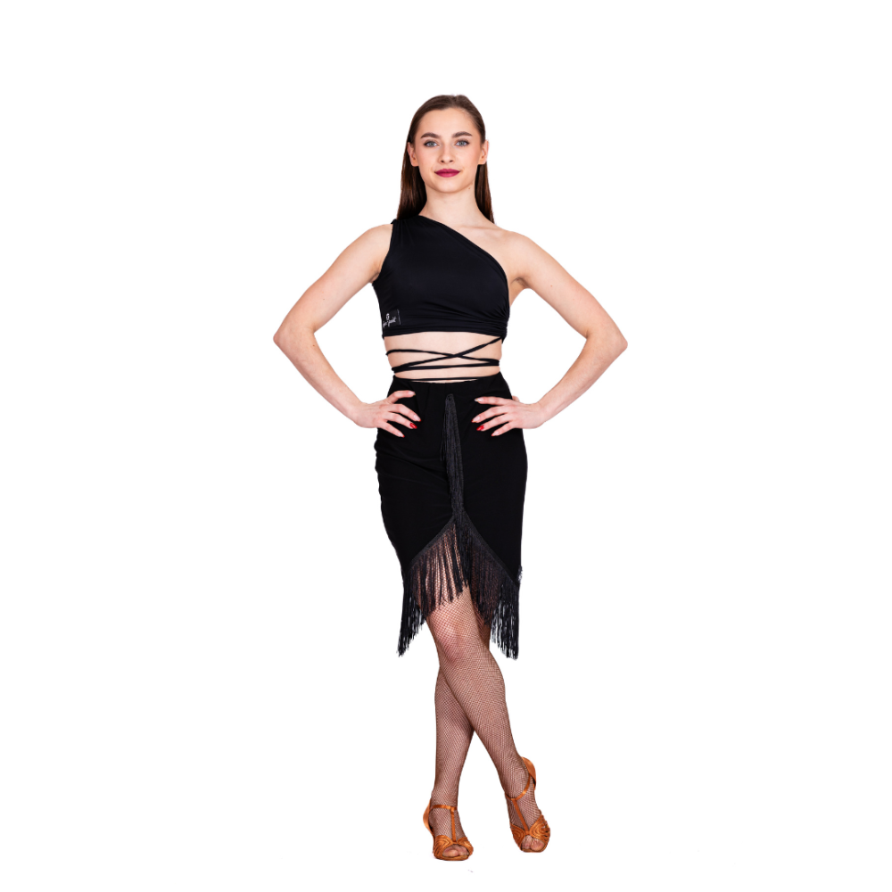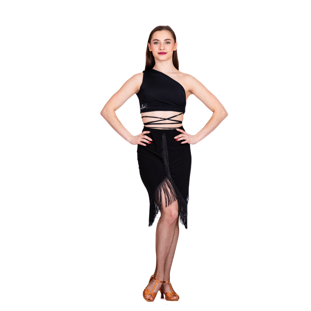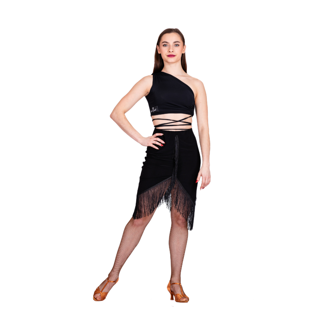 Tréninková krátká sukně s třásněmi na LAT. Sukně je naší vlastní výroby dance-pOint.