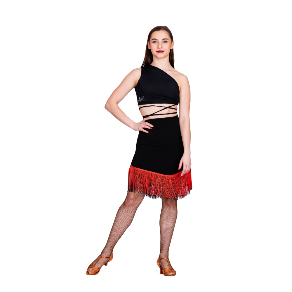 Tréninková krátká sukně s třásněmi (2řady) na LAT. Sukně je naší vlastní výroby dance-pOint.