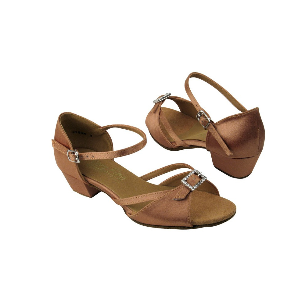 Dětské taneční boty VF dětské mod.1720 Tělový brown satén 3,5cm kostka
