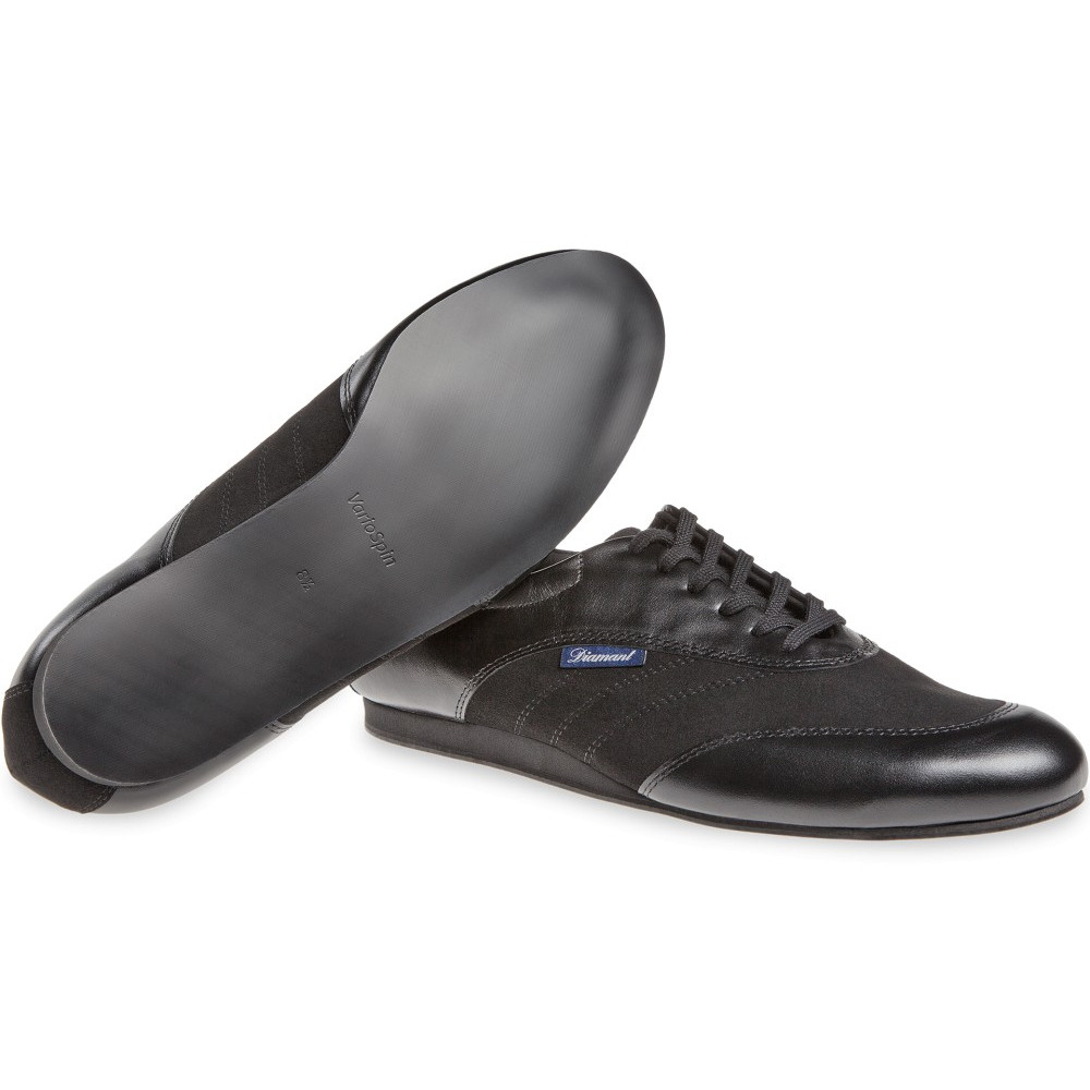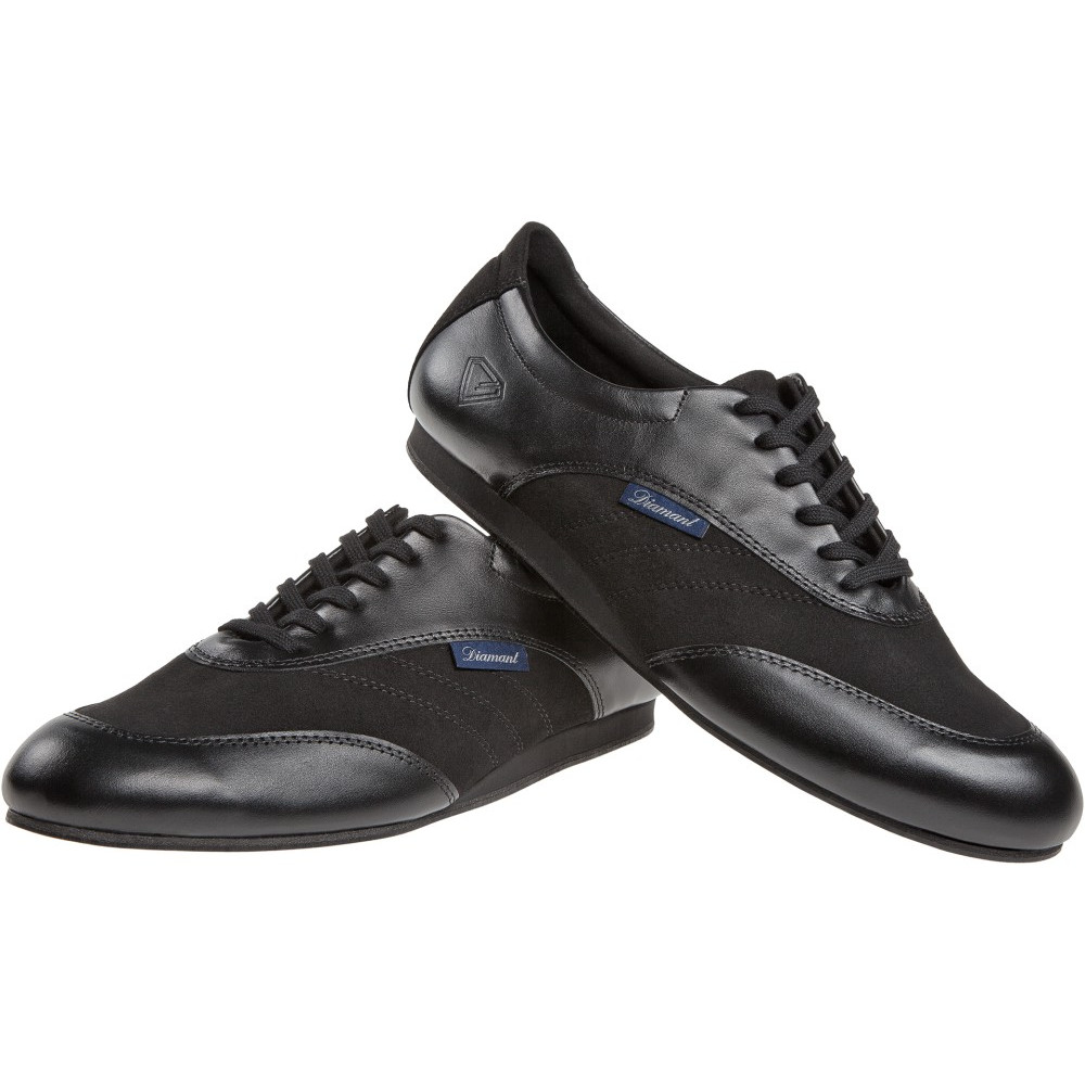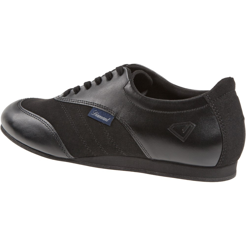 Mod. 191 Diamant pánské tenisové taneční boty Vyrobené v Německu, ručně vyrobené ve sportovním Oxfordském designu s uzavřeným 6otvorovým šněrováním a polstrovaným okrajem hřídele. Tato taneční teniska v šířce H (pohodlná) je dodávána s průběžným klínkem na patě. Jako vnitřní podšívka je zabudováno prodyšné mikrovlákno pohlcující vlhkost z prvotřídní italské produkce. Na svrchní materiály z černé kůže nappa v kombinaci s černým mikrovláknem jsou použity materiály nejvyšší kvality z Itálie.